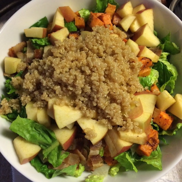 Sunday:  Quinoa, sweet potato and apple chopped salad  (Will cook the quinoa in bone broth)