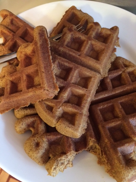 Pancakes. (Can be frozen)  One very ripe banana, 2tbsp coconut flour, 1 tsp vanilla extract, 1tsp cinnamon, 1/2 tsp baking soda, 3 tbsp almond milk or whole milk, 1tbsp butter or coconut oil, 4 eggs.  Blend in blender until just combined and grill up.  I used a cast iron griddle, but I am also aggro about avoiding “non-stick” cooking surfaces.