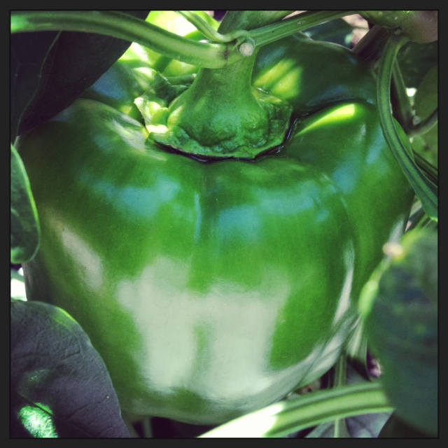 I am eagerly anticipating the bell pepper harvest. I have several LARGE peppers that are looking amazing. This particular pepper grows big and green, but turns red as soon as it is ripe. I cannot imagine that they will get much bigger, but they are all still green. CANNOT wait!
